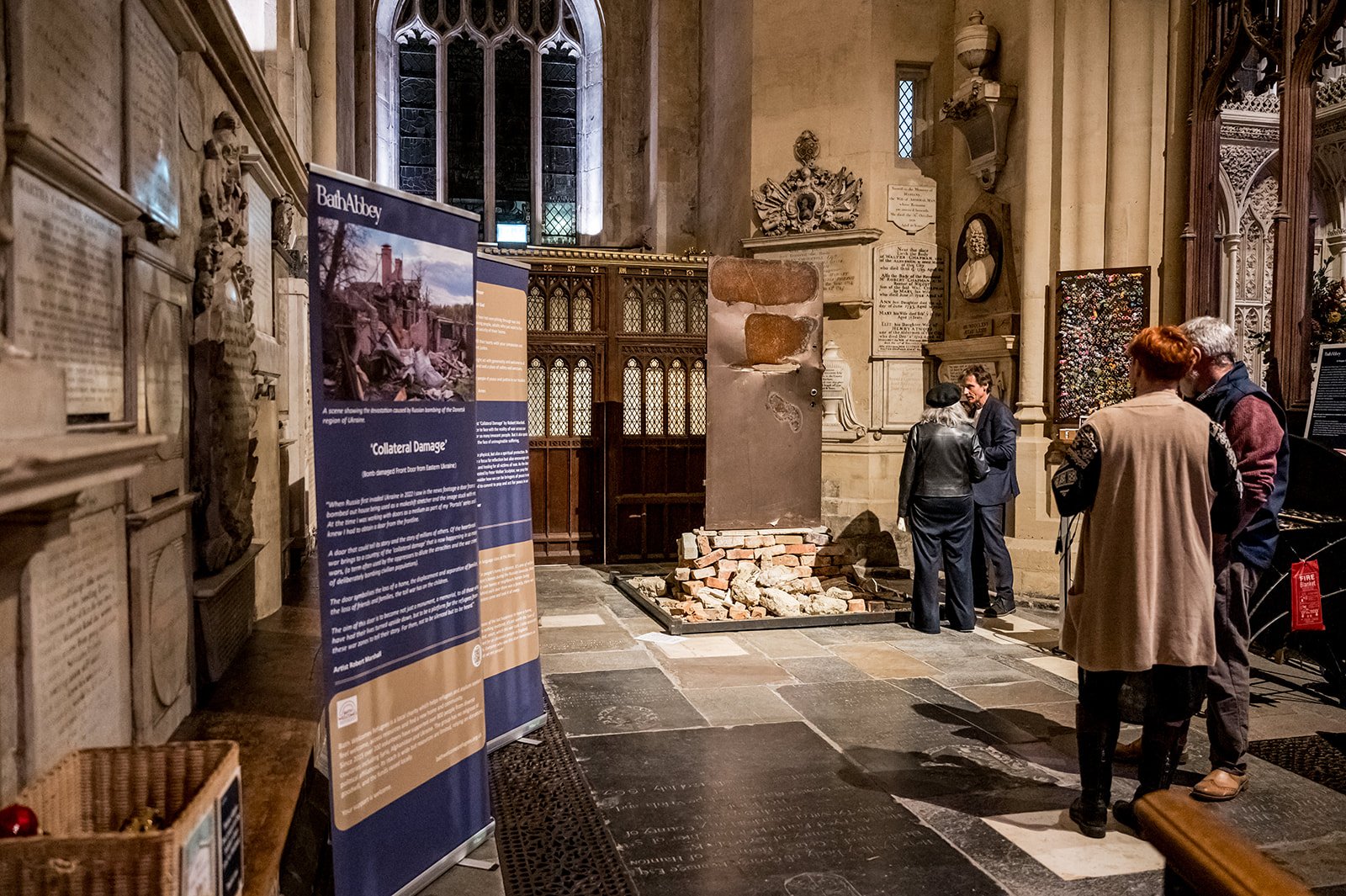 “At Bath Abbey we are honoured to host ‘Collateral Damage’ by Robert Marshall. This powerful installation brings us face to face with the reality of war across our world today, and the tragedy of loss for so many innocent people. But it also speaks of survival and incredible resilience in the face of unimaginable suffering.